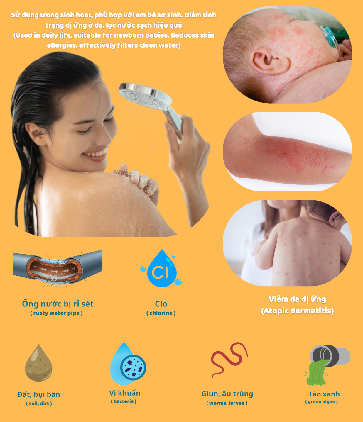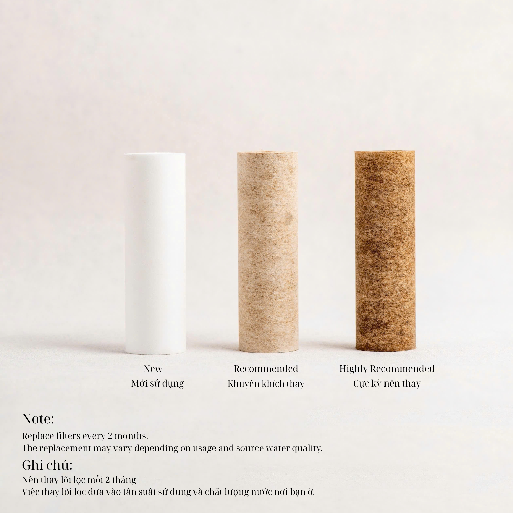 When purchasing the product set, you will receive 1 short water filter core, 1 long water filter core, 1 vitamin C & collagen gel, check the goods if you encounter any problems, please contact hotline 1900 8940.